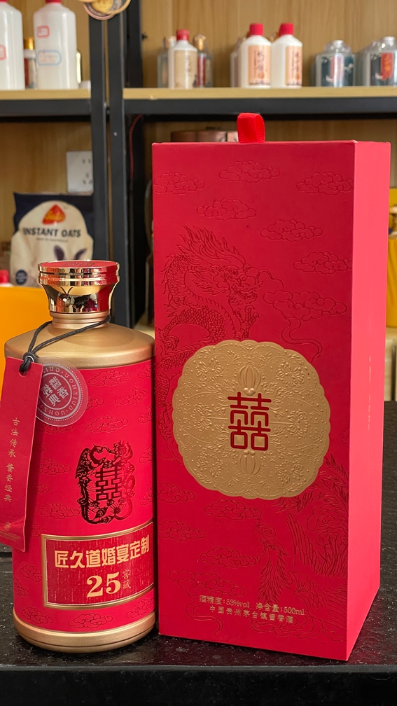 方案:8年坤沙 + 红色彩色瓶 + 定制礼盒。